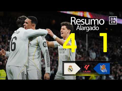 Watch all the goals and highlights from the La Liga match between Real Madrid and Real Sociedad played on Saturday, February 14, 2026. The final score was Real Madrid 4 - 1 Real Sociedad.